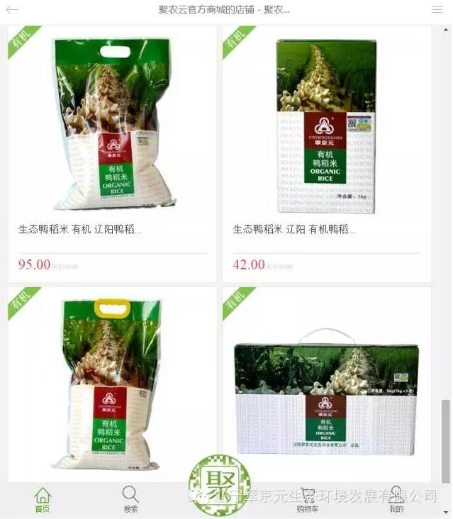 2016年1月20日,翠京元有机鸭稻米作为辽宁省唯一一家有机大米供应商,获聚农云商城隆重邀请,强势入驻! 聚农云商城,是【农业之窗】旗下重点项目,是移动互联网变革时代创立的原生态有机农业产品交易平台。聚农云商城为中国亿万家庭提供优质、健康、安全放心、可信赖的原生态、有机农副产品,打通从产地直达家庭厨房的供应链。聚农云平台优选高品质、可追溯的原生态、有机农产品供货商,在采购、售中、售后多环节把关,确保产品质量,限量入驻,打造原生态、有机农产品可信赖品牌。