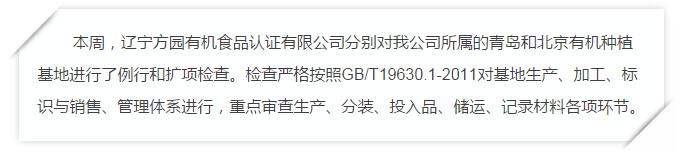 在此,感谢辽宁方园有机食品认证有限公司对我们的监督、检查、指导和支持!