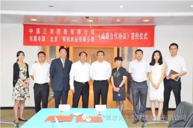 2016年6月30日上午10点,中国三农控股有限公司(以下简称“中国三农”)与东周丰源(北京)有机农业有限公司(以下简称“东周丰源”)战略合作协议签约仪式暨深化合作座谈会在中国三农隆重举行。中国三农总裁金嘉里、副总裁吴轶,东周丰源董事长张朝晖、总经理王琳、运营总监刘华宁等领导亲临签约现场,共同见证并进行了签约仪式,双方就今后合作展开深入座谈。