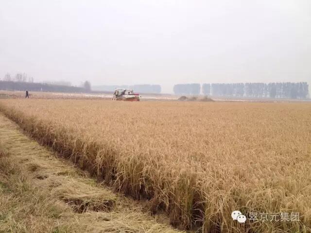 2016年10月20日,翠京元辽阳黄泥洼和小北河有机基地如期迎来了收获季,工人们趁着晴好天气正在抢收已经成熟的稻谷。大型收割机轰鸣作响,确保颗粒归仓。