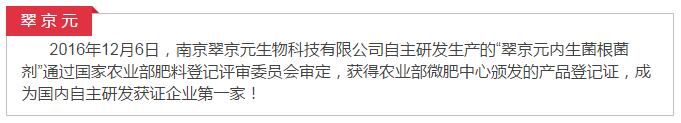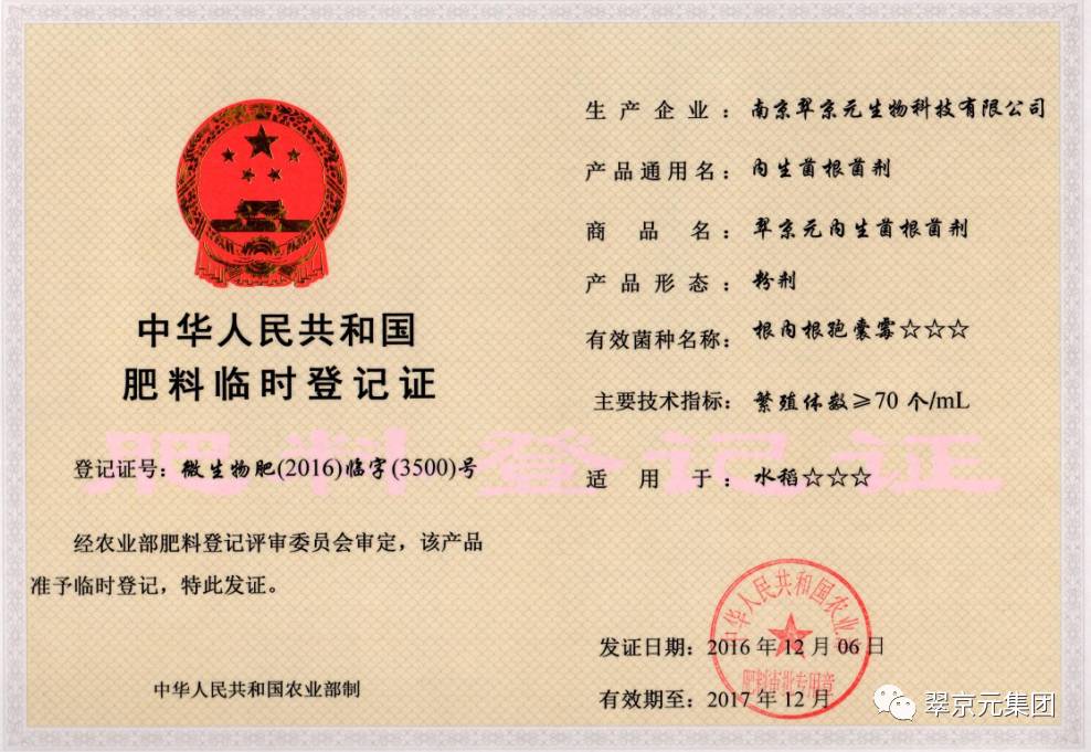 翠京元内生菌根菌剂喜获农业部微生物肥料登记