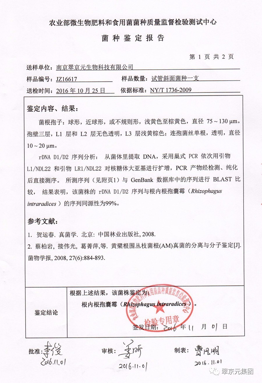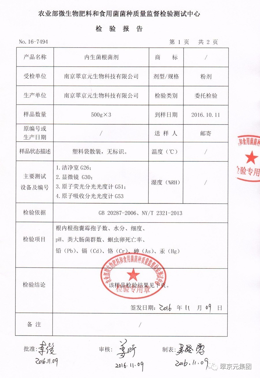 翠京元内生菌根菌剂检测报告 翠京元科技 翠京元科技