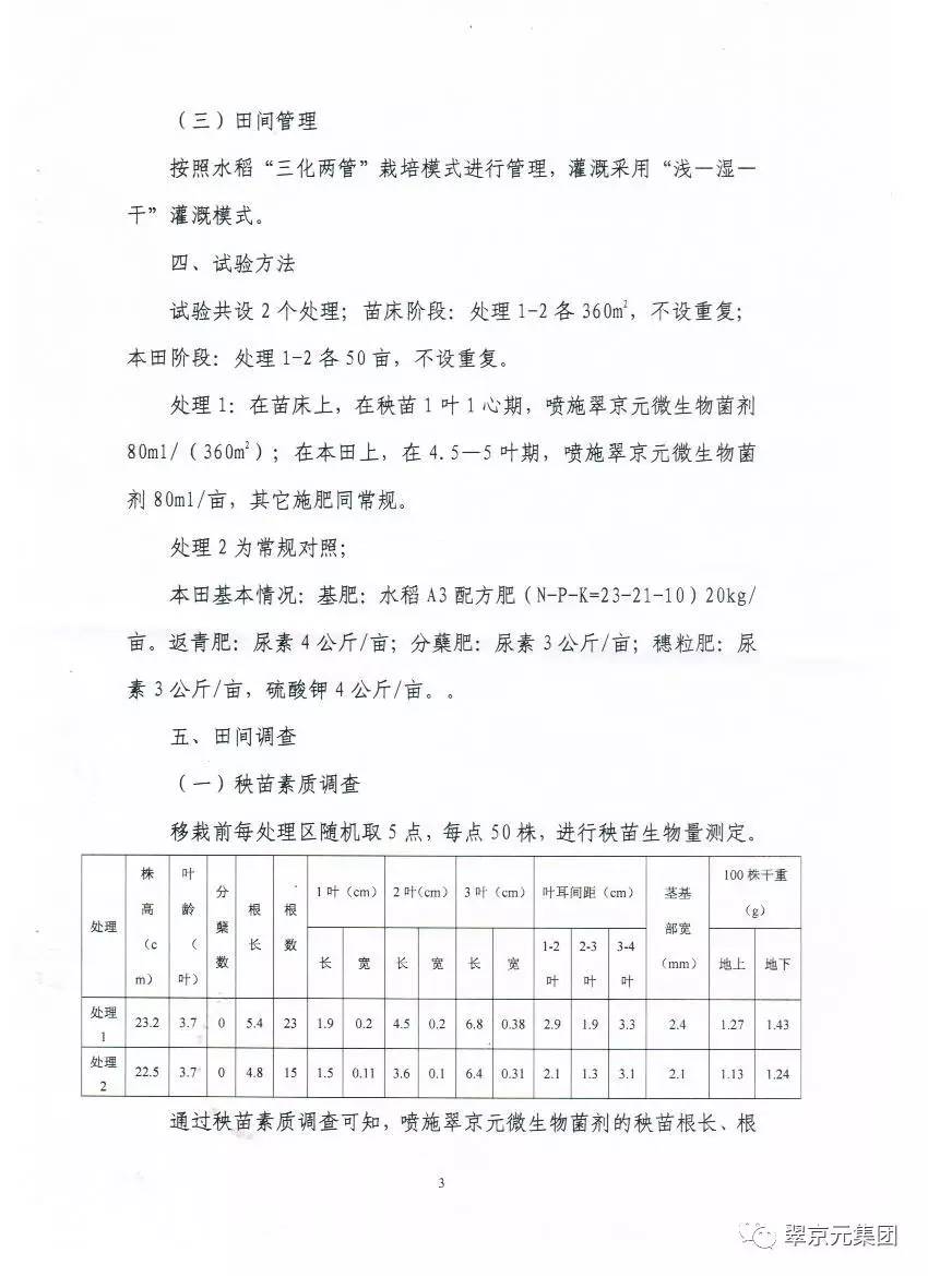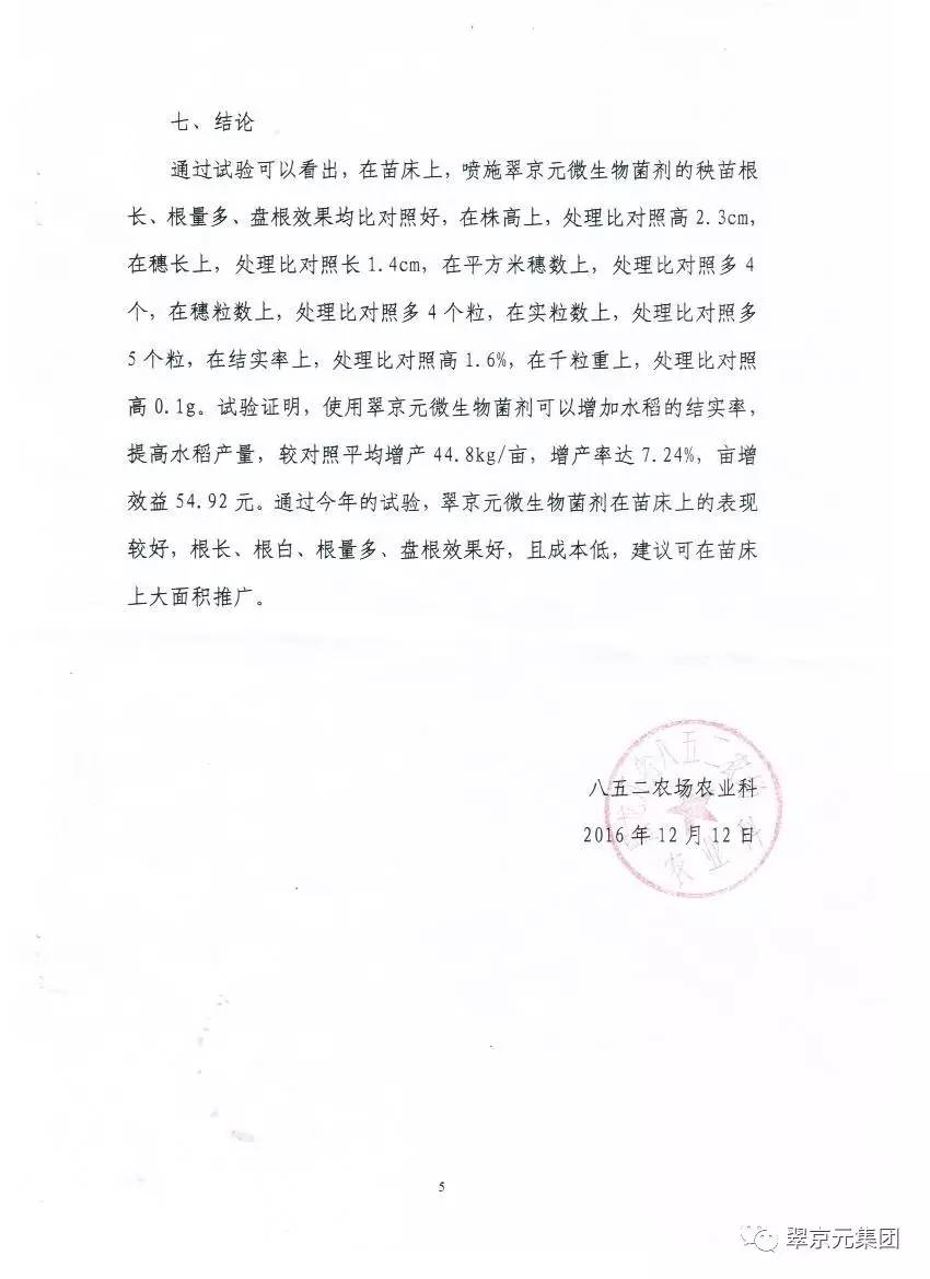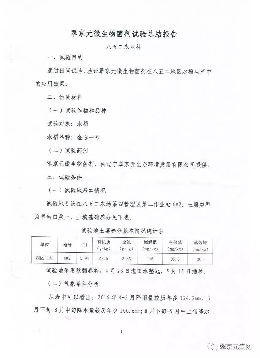 翠京元微生物菌剂八五二农场应用示范总结报告