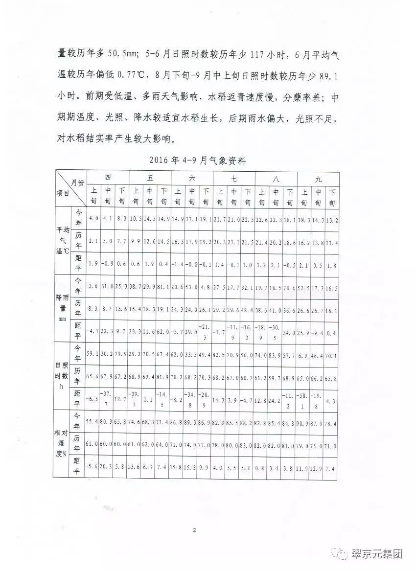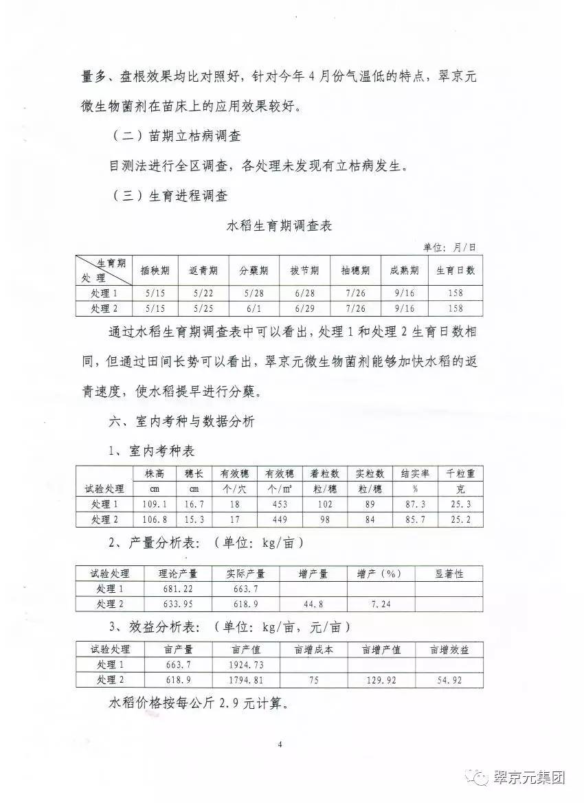2016年黑龙江省八五二农场在水稻生产中使用翠京元微生物菌剂,在天气条件不利的情况下,翠京元水稻示范田与对照相比,水稻返青、分蘖、拔节提前,有效穗和结实率提高,增产增收。应用示范总结报告如下: