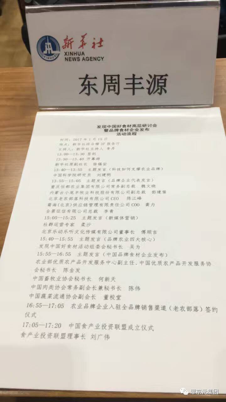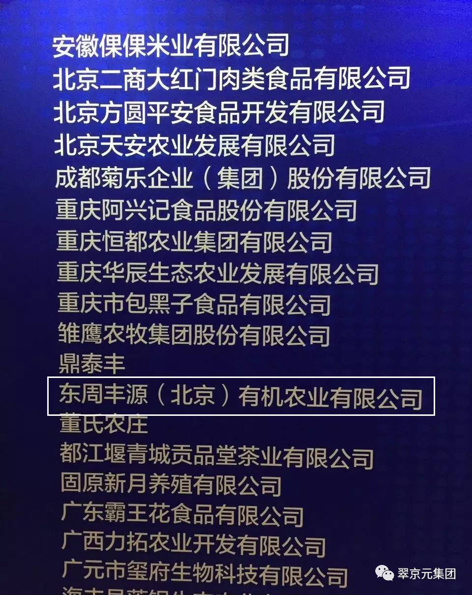 2017年1月15日,由新华社十家媒体联合主办、经济参考报牵头的大型系列活动——“发现中国好食材”高层研讨会在北京召开,会上发布了“2016品牌食材榜”入选名单,东周丰源(北京)有机农业有限公司成功入围。
