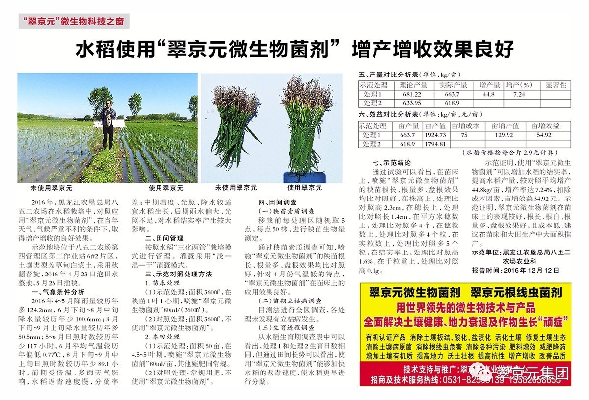 水稻使用“翠京元微生物菌剂”增产增收效果良