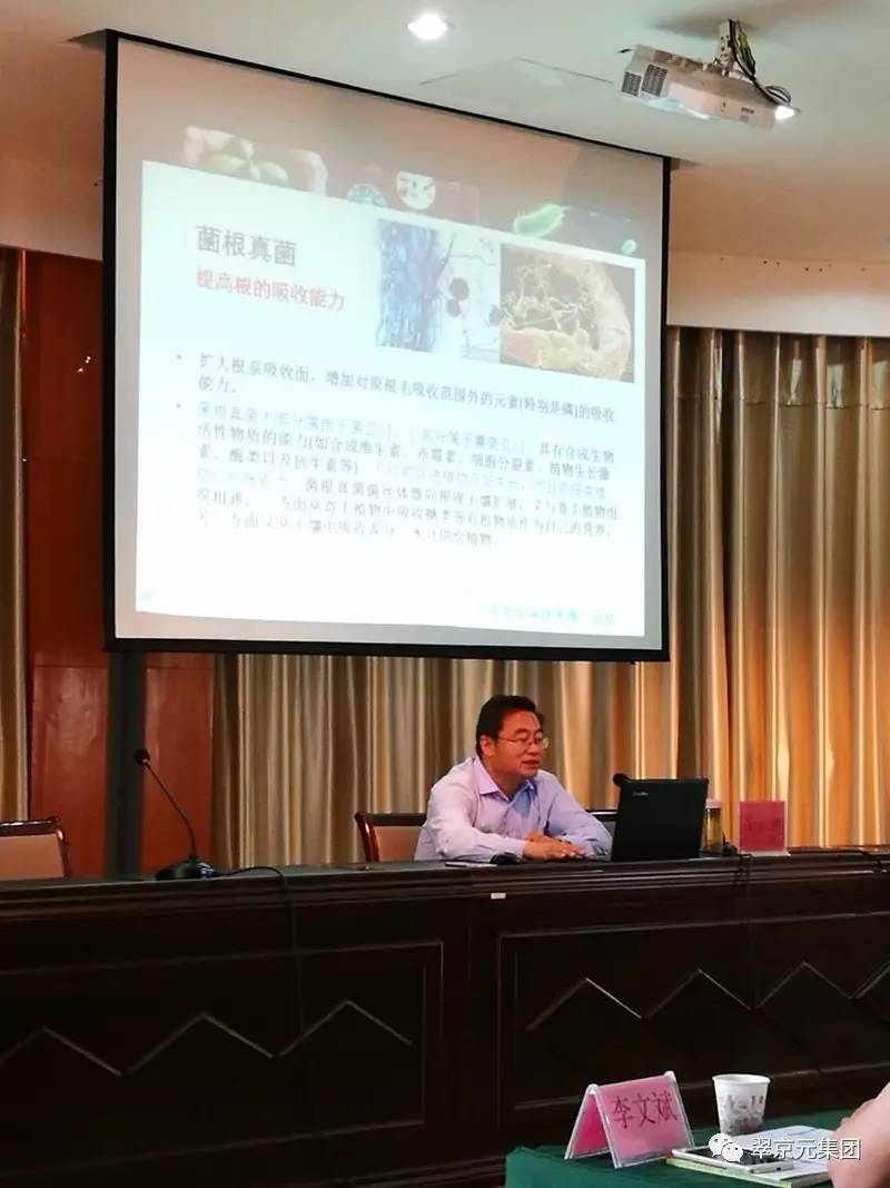 南京翠京元总经理成钟向与会专家及代表介绍翠京元微生物菌剂使用情况及作用原理 我公司所研发生产的微生物菌剂在西瓜育苗种植上取得了显著效果。在育苗期,使用内生菌根菌剂处理的幼苗与对照相比,根系更加健壮,植株长势更好;定植后,使用菌剂处理的植株不仅提前抽蔓开花坐果,且坐果率优于对照,其中T3处理(减少常规用肥用量40%+内生菌根菌剂+微生物菌剂)的效果最佳;收获的第一茬西瓜,使用菌剂的处理与对照相比,在产量和甜度上均优于对照,且在整个生长期减少一次用药成本。