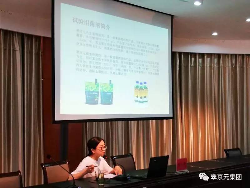 翠京元技术讲师周乐霖介绍翠京元微生物菌剂在经济作物上的应用效果 6月8日上午,与会代表前往南京蔬菜所种植试验基地翠京元微生物菌剂示范点进行观摩。试验用两款微生物菌剂产品,分别为翠京元内生菌根菌剂和翠京元微生物菌剂。