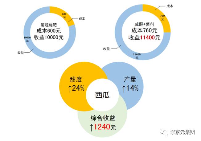 西瓜种植综合效益分析 翠京元内生菌根菌剂和翠京元微生物菌剂能够显著促进作物生长,改善土壤状况,不仅能够提高作物对病虫害的抵抗力,还能减少用药次数,保证蔬菜使用安全,同时增产增收。 南京翠京元生物科技有限公司致力于通过微生物技术修复、改良土壤,增强作物对养分的吸收,提升肥料利用率,减少化学肥料对生态环境的破坏,促进中国绿色、环保、生态农业的发展。 |