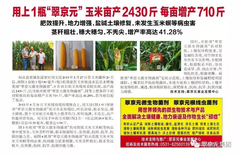 用上1瓶“翠京元”,玉米亩产2430斤,每亩增产
