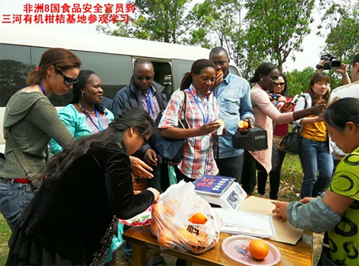 非洲食品安全官员考察翠京元重庆三河有机柑桔基地
