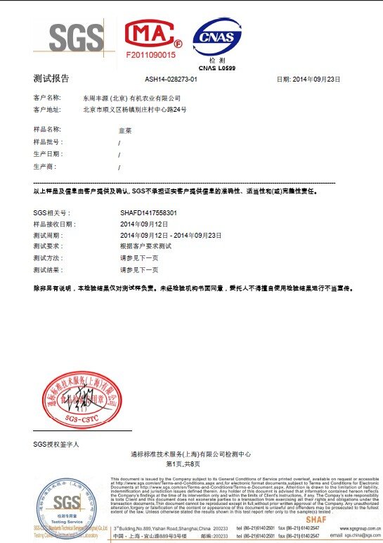 翠京元有机产品,源于诚信,诚信铸就品牌! 有机韭菜检测报告: ![]() ![]() ![]() ![]() ![]() ![]() ![]() ![]() |