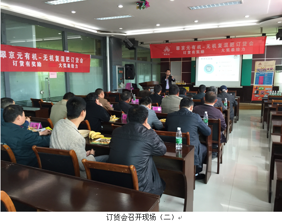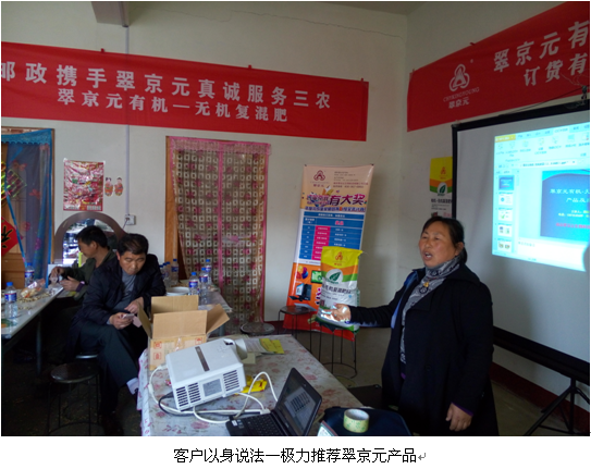 为大力推进翠京元有机-无机复混肥料在徐州、连云港、盐城、淮安等地区销售使用,南京翠京元生物科技有限公司在2015年4月携手江苏省邮政公司共同在以上区域开展翠京元专场订货会。